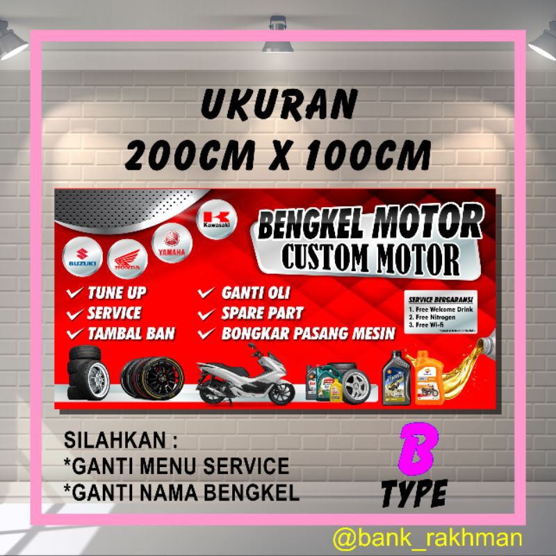 Tersedia berbagai macam produk banner bengkel motor dari berbagai variasi & tipe yang bisa disesuaikan dengan kebutuhan anda.