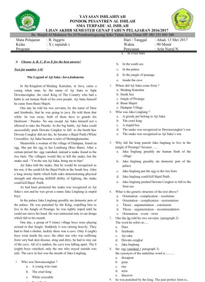 Contoh soal essay mid semester genap bahasa inggris kelas x sma. Soal bahasa inggris sma kelas 10 contoh soal un bahasa inggris smp soal . Dalam bahasa inggris kelas xii untuk kurikulum 2013 revisi ini kamu akan belajar. Watch tvc join facebook erlangga . Soal tersebut telah diambil dari materi recount text, .